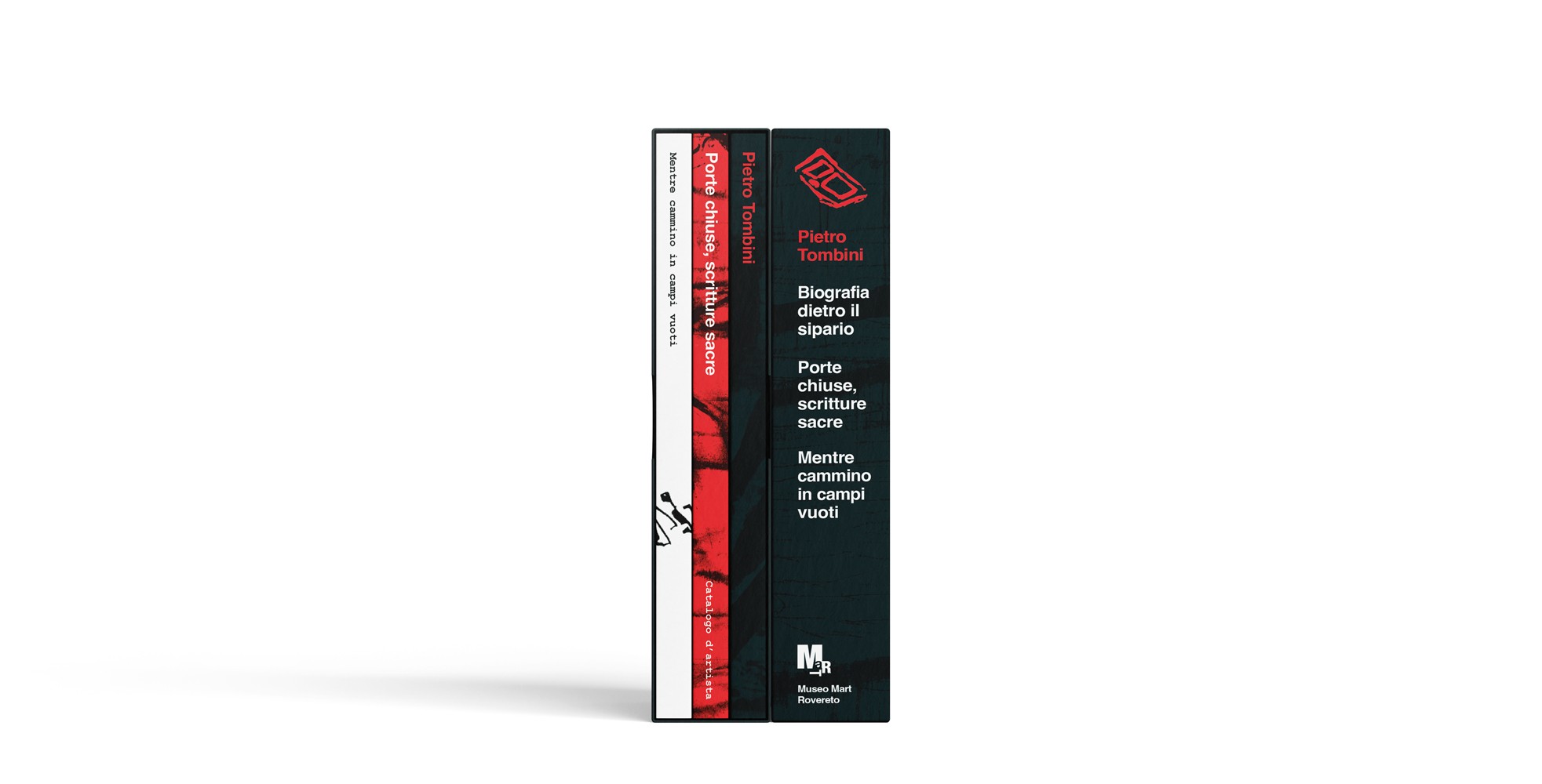 Il cofanetto, composto da tre volumi dedicati al percorso artistico di Pietro Tombini, è inserito in un contenitore acquistabile al bookshop del museo. Pensato come oggetto da collezione e strumento di approfondimento post-mostra, il formato compatto (A6) richiama le dimensioni dei supporti di stampa del progetto, offrendo un’esperienza a misura d’artista e trasformandolo in un oggetto di pregio.