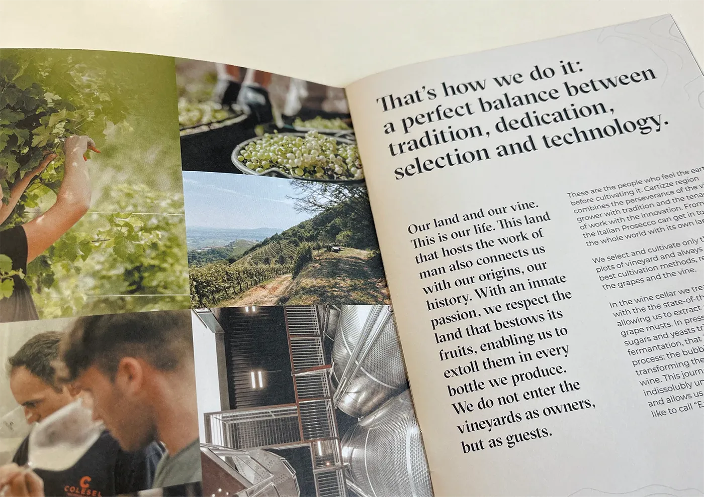 La tipografia GT Spectra Display esprime eleganza e solidità, coerente con il posizionamento alto del marchio nel settore vinicolo.