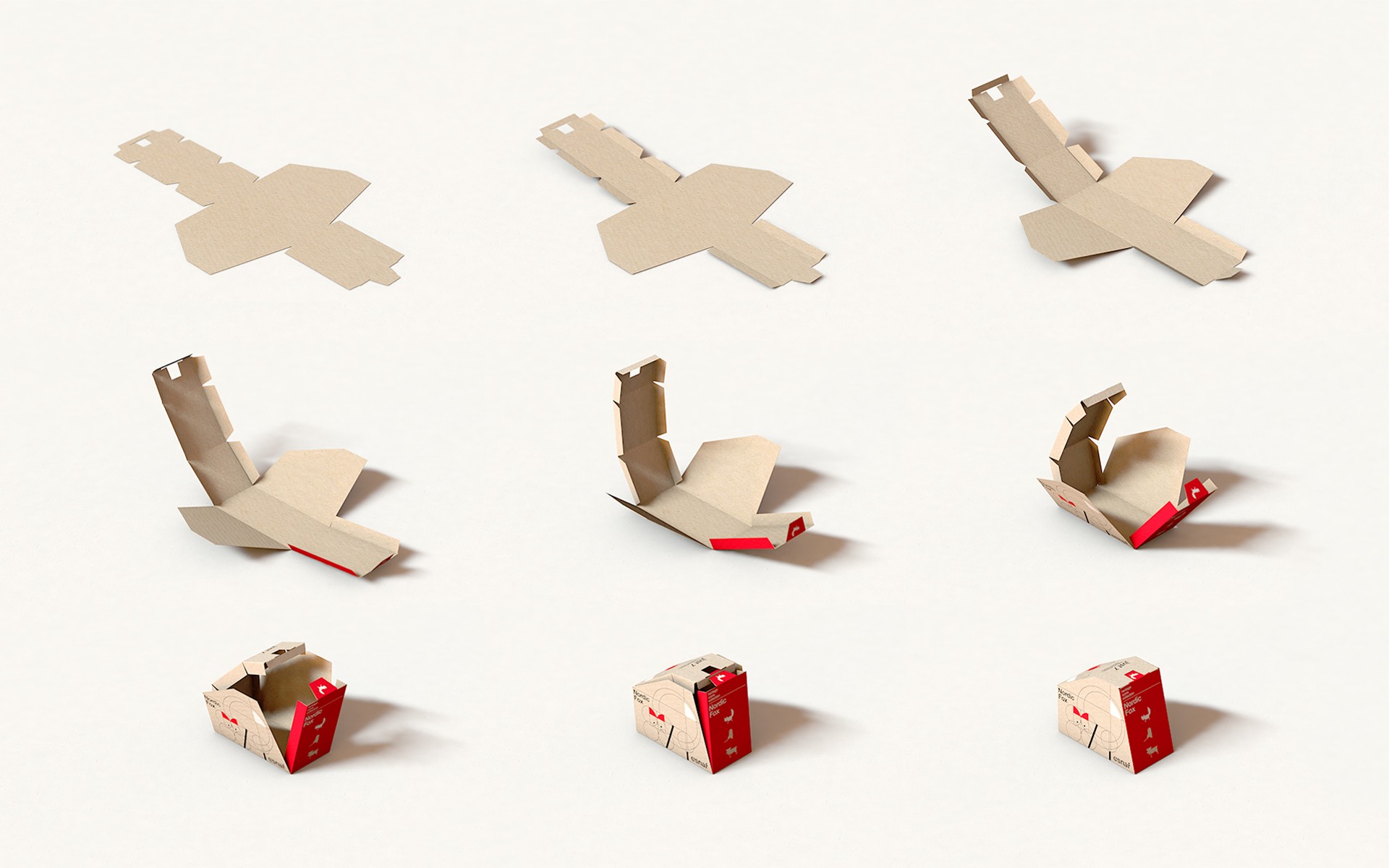 Pensato per un pubblico adulto, il nuovo packaging lo posiziona come oggetto da collezione. Niente rappresentazioni realistiche del giocattolo, la scatola comunica per suggestione, diventando parte del progetto.